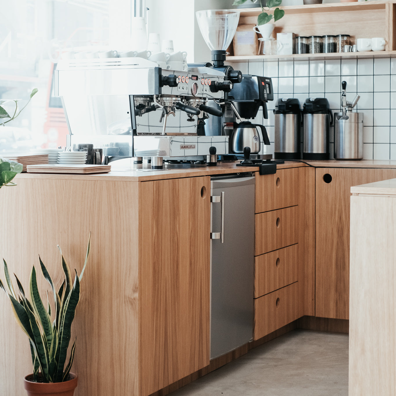 Některá místa mají svou duši. Ta v Sorenu je minimalistická a voňavá a to jsme chtěli říci i jejím interiérům. Inspirovali jsme se příjemným „berlínským“ designem a vytvořili sérii polic a masivních skříněk či korpusů z přírodního masivního dubu a dubové dýhy, které dýchají čistotou a vytvářejí příjemnou atmosféru, ve které vše chutná ještě lépe a čas plyne pomaleji.